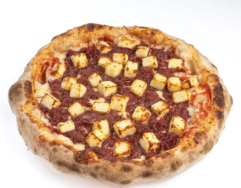 - Mozzarella, Molho de Tomate Pelati, Carne Seca Desfiada, Queijo Coalho e Orégano