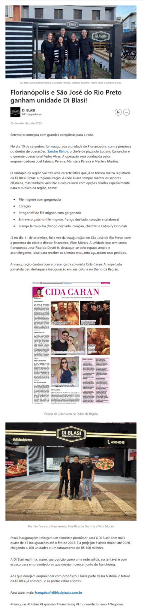 Florianópolis e São José do Rio Preto ganham unidade Di Blasi!